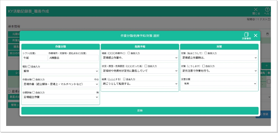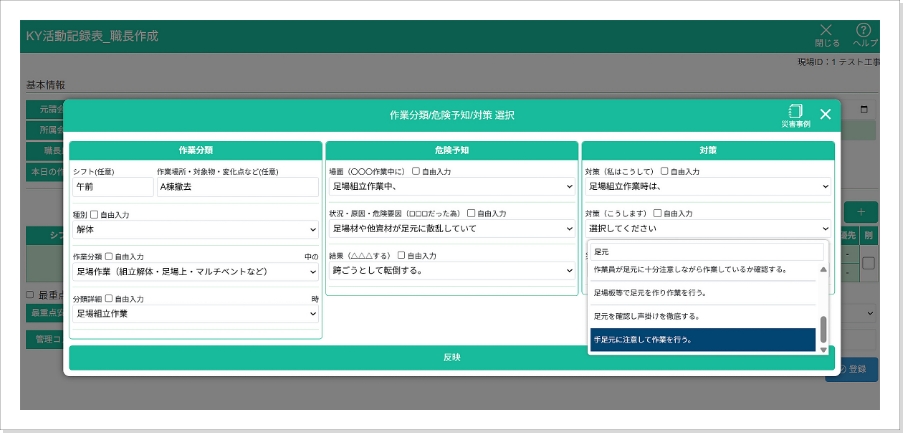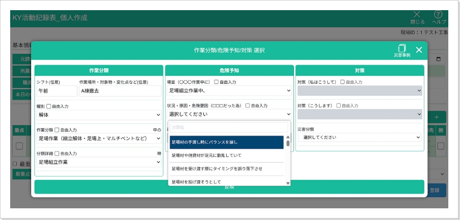 • 作業内容、KY種別(管理・職長・個人)