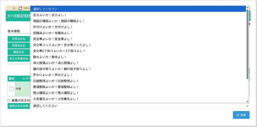 • 最後に「最重点安全目標」を選択し、KY登録完了